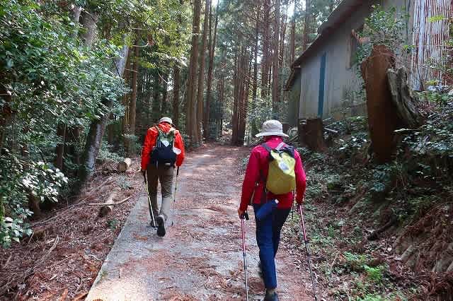 杉が植えられているのだろう、茶色く変色した山肌になっている。コンクリート道から