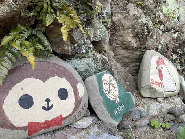 手書きの案内板や石に書いた絵を見ると、お会いは出来なかったが、そのご夫婦の