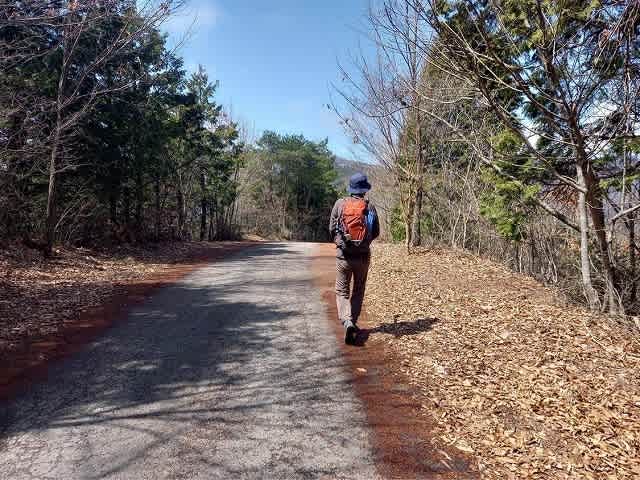 杉林を抜けると車道に出た、ここからは舗装路を歩いて行く。
