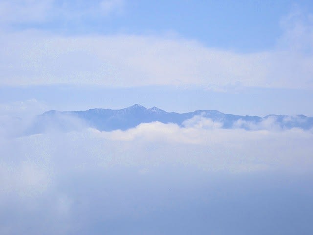 三頭峠だろうか。まだまだ雲が登ってきている。もっと標高が高ければ雲海を
