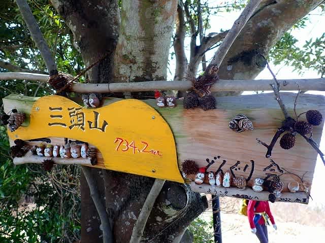 三角点の手前には新しく可愛らしい山名札が掛かっていた。