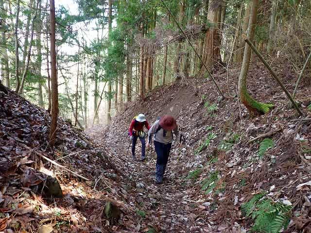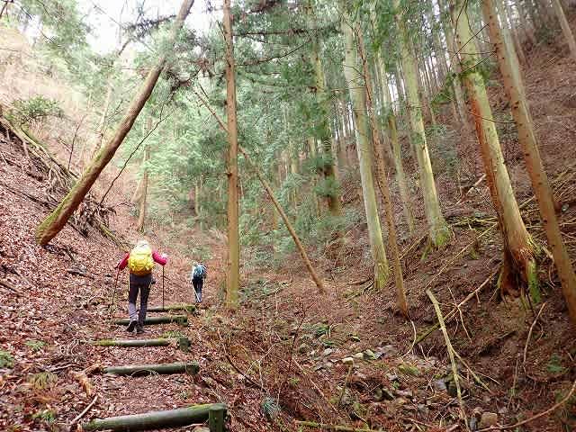 谷あいの道が少し左に振り、杉林の中の道になると峠まであと少し。『KAZASHIさん、