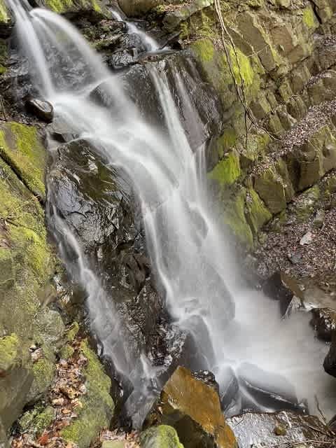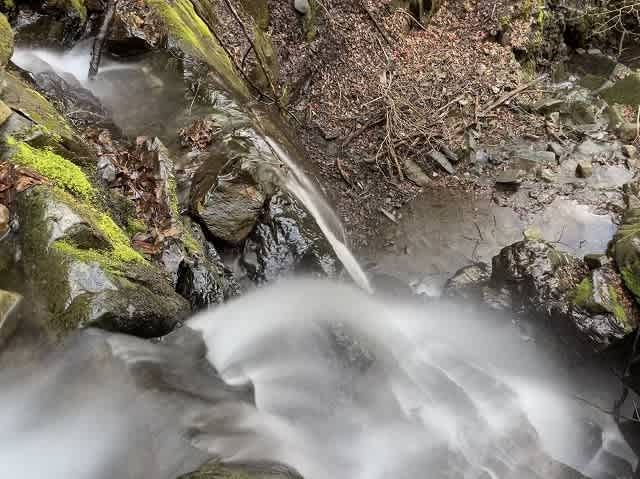 段差になった場所では小滝となって大きな音をたてて流れ落ちて行く沢の水。