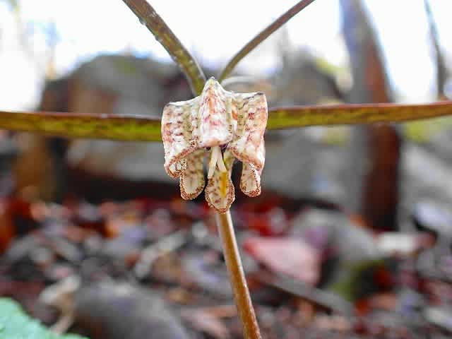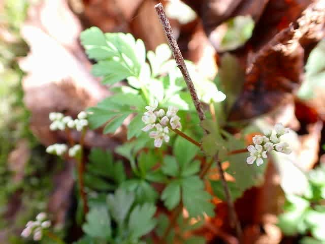 落ち葉の中に咲く花と葉が、周りと同系色で目の悪い私では見つけられなかっただろう。