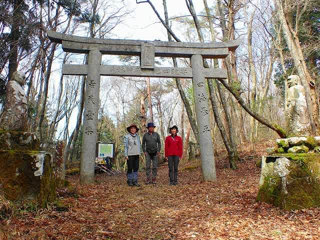 展望所から車道に降り、舗装路から峠道へと歩いて行く。三頭峠で細女命さんの