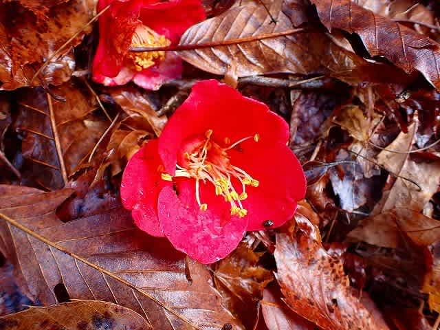 散った真っ赤な椿の花だった。