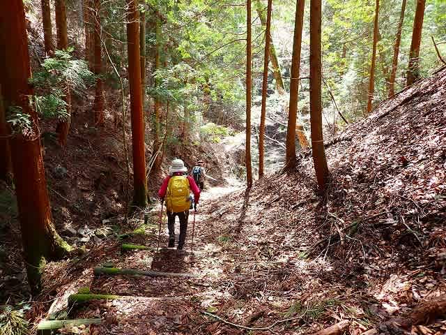 最初はコンクリートの車道から直ぐに山道になる。昨日降った雨がまだ地表を濡らし、
