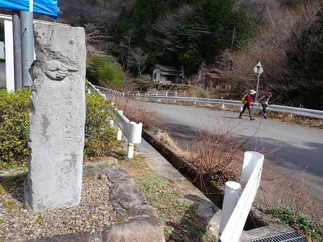 橋の手前には昔は金毘羅堂があり、これから谷あいの足元の悪い峠道を行き来する