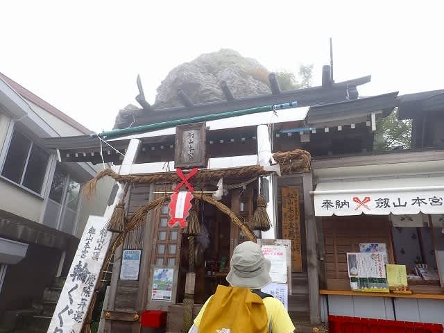 三十五社からまた下って行くと、背後の大岩をご神体とした両劔神社。ここから先に進
