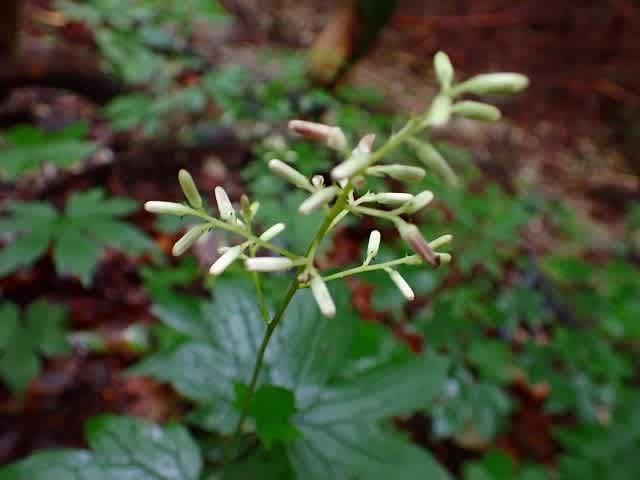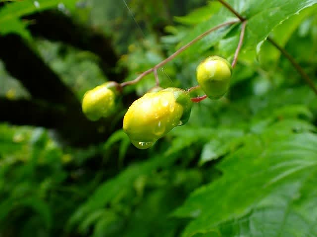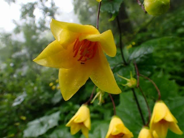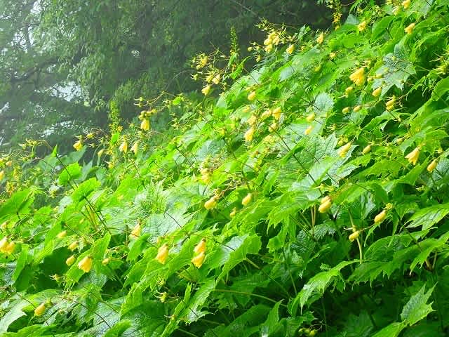 行場の分岐を左に折れて下がって行くと、まだ多く蕾を残したキレンゲショウマの群生