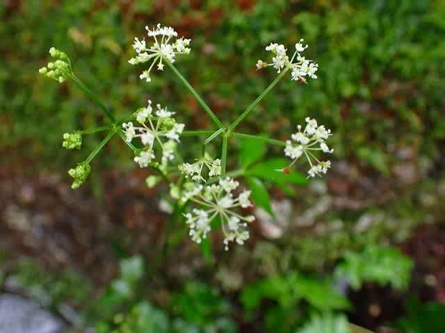 護柵のネットの奥に花を咲かせているのでアップの写真が撮りづらい。ハナウドの花に
