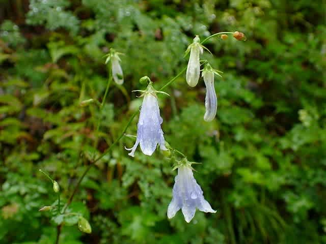 が行だそうだ。その手前の岩の足元にはソバナがたくさん咲いていた。