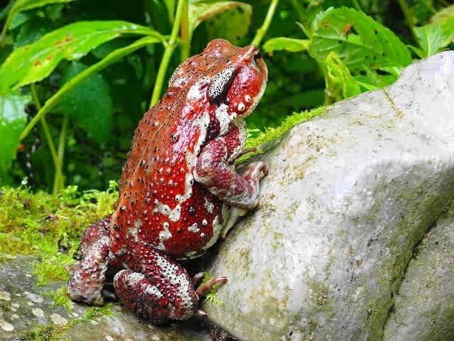 見てみると大きなヒキガエルが微動だにせず石の上に座っていた。あっちゃんは初めて