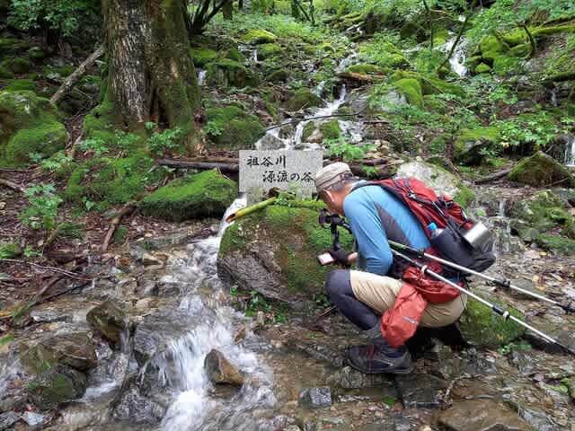 予想していた通り祖谷川源流の沢でも勢いよく水が流れていた。行場の穴吹川源流から