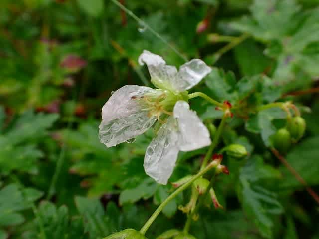 かって縮んだ花弁が雨が当たって少しは生き返っているように見える。