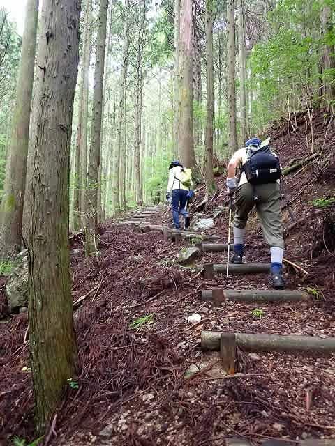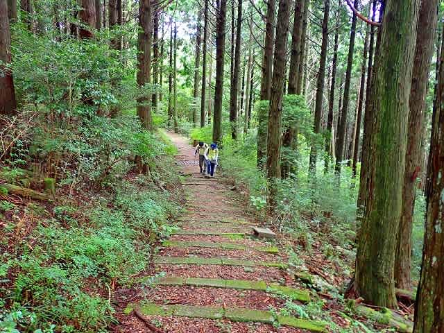 中から道標に従って遊歩道へと進んで行く。最後に九十九折れの道を下って行くと、学