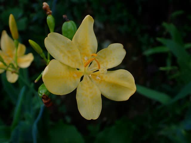 イレの手前には派手な色をしたヒオウギがあちらこちらに咲いていた。