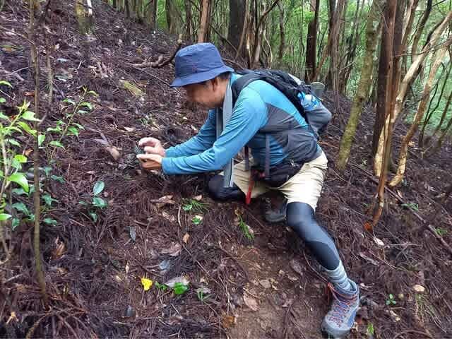 一旦林道に出てしばらく歩いて行くと草刈り機のブンブンと回る機械音が聞こえてきた。