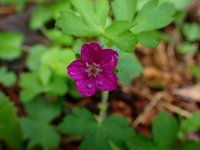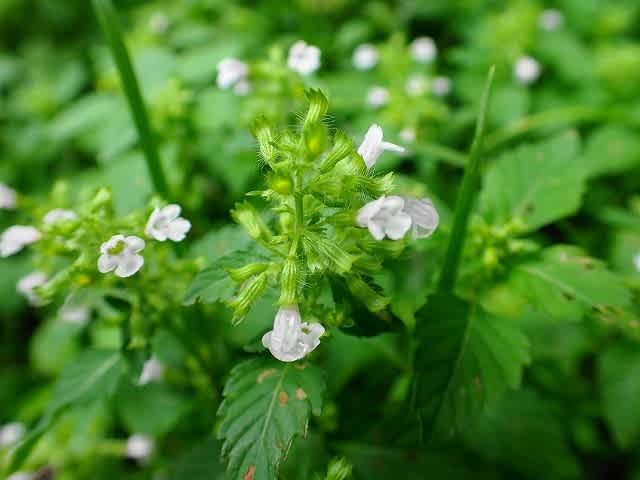 坂を登りきると林道に向かって今度は緩やかな下り坂になる。道の脇には可愛らしい花