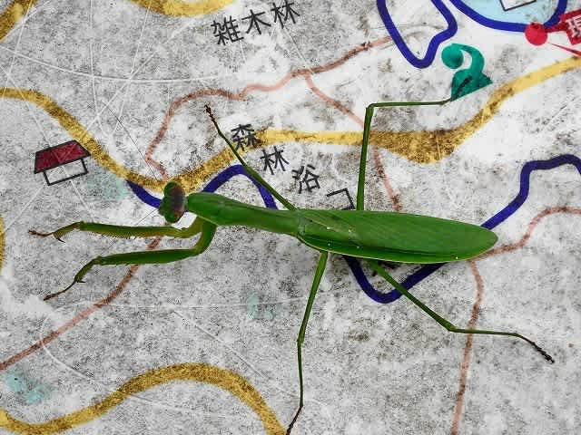 る。視線を右に移すと高知市内まで見えた。展望デッキの案内板に大きなカマキリ。