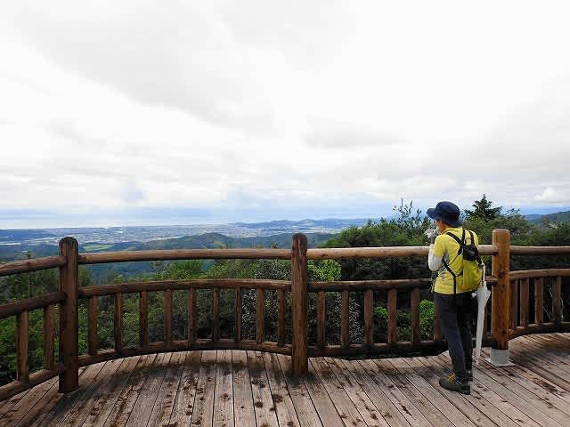 雨予報で期待はしていなかった展望台からの景色は意外と遠くまで見渡せた。左に物