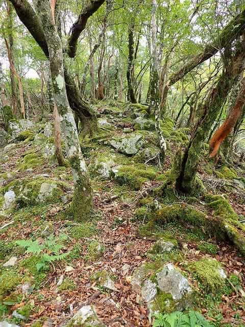 苔むした岩の転がる場所から道は分かりにくくなる。とにかく尾根を外さないようにと