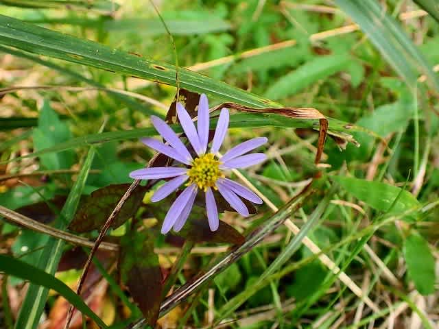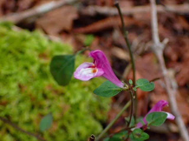 単調な林道歩きも、道の脇に咲く小さな花たちが気持ちを和ませてくれる。寒さのせい