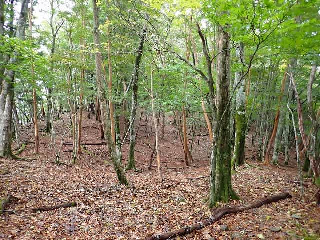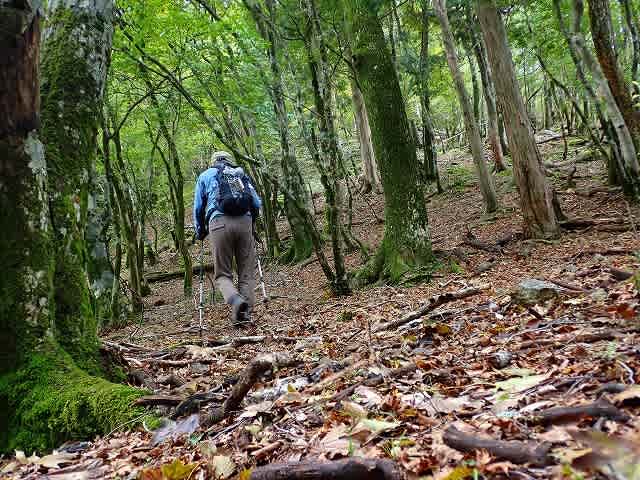 さなピークの手前にブナの古木。そのブナの木を眺めながら一旦暗部に。ここから参考