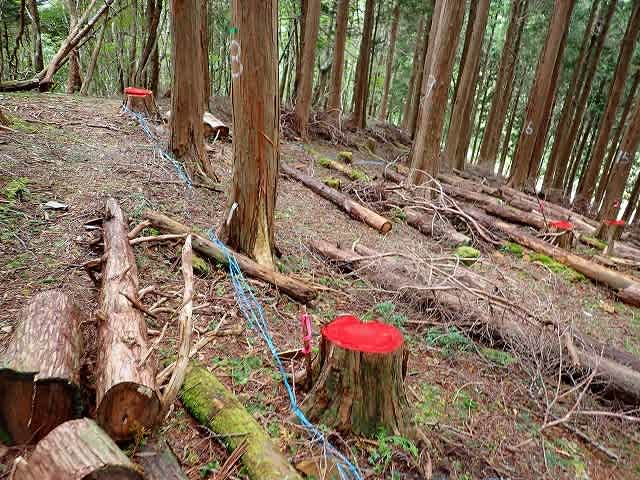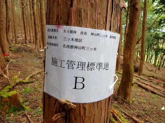 『森林整備・施工管理標準地』と書かれた張り紙があった。後で調べて見ると保安林の