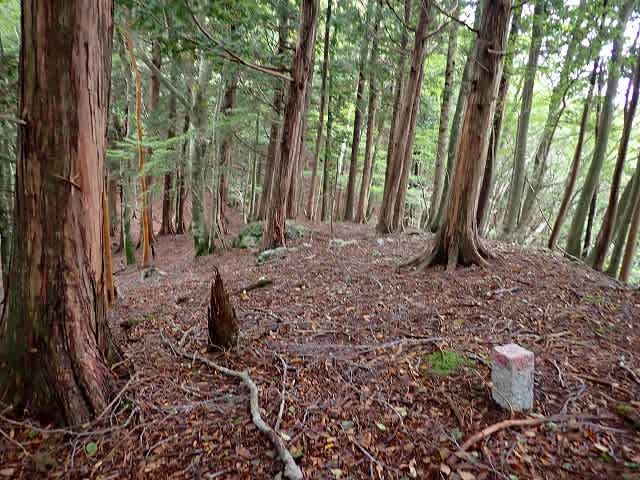 日最後のそして四つ目のピーク。三角点の横には鳴門岳友会の山名を書いた杭がある。