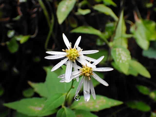 旭丸峠まで戻ってきた。往路では気にも留めなかったが、植林の碑の通り道の脇には白