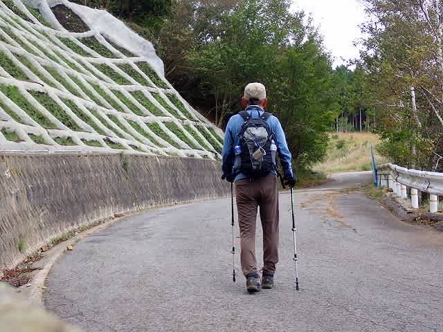 まま舗装路を歩いて行く。10分ほど歩くと左手に真新しい法面保護のコンクリート枠
