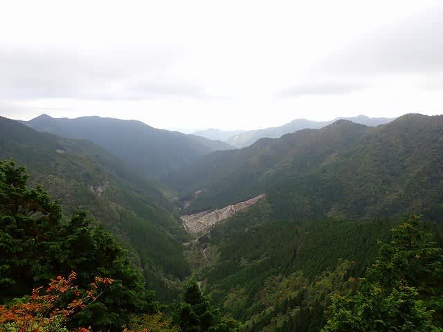 途中で開けた場所からは先ほどの旭丸峠から勝浦町へ抜ける林道と、勝浦川の源流部が