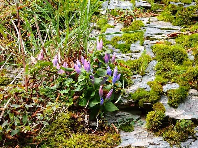 一つ目のピークをゲットしたら、蕾のままのリンドウを眺めながら階段を降りて行く。
