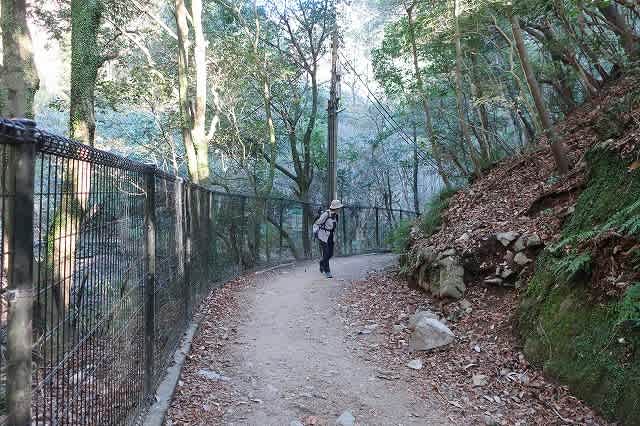 接下って行く道。そして真ん中が再度山への上りの道になる。再度山への道は、距離は短