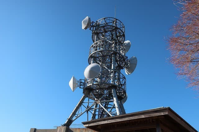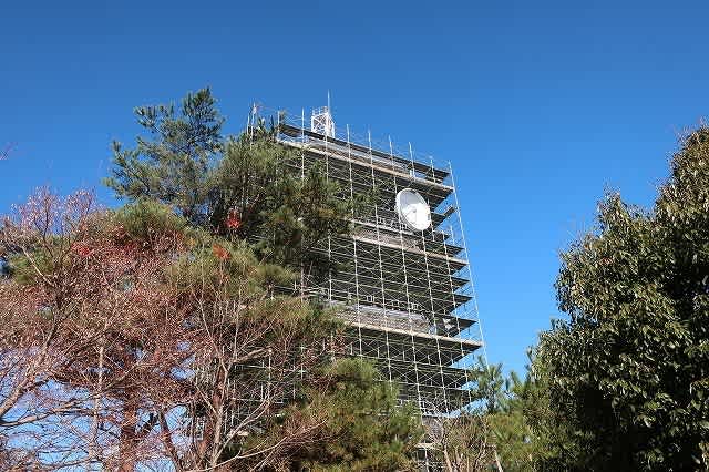 二つある巨大な電波塔のうちの一つは足場で囲われて改修工事中、もう一つの電波塔の下