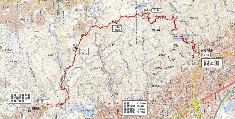 前回は須磨から9座登ったことになるが、今日は菊水山・鍋蓋山・再度山の