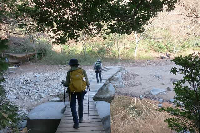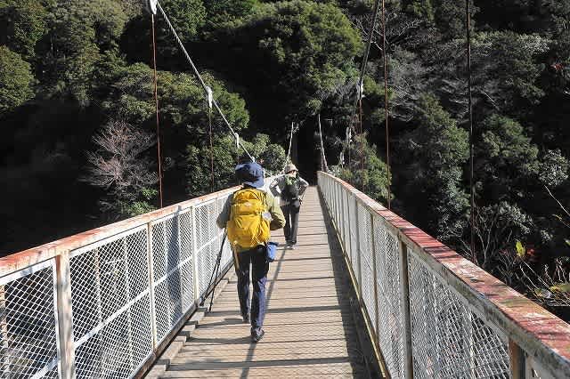 国道428号線の上に架かる天王吊り橋を渡ると、今日二つ目のピークの鍋蓋山への登り