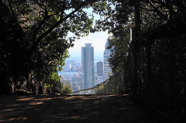 ここでも途中で見晴らしの良い場所があった。眼下にはポートタワーがはっきりと目視で
