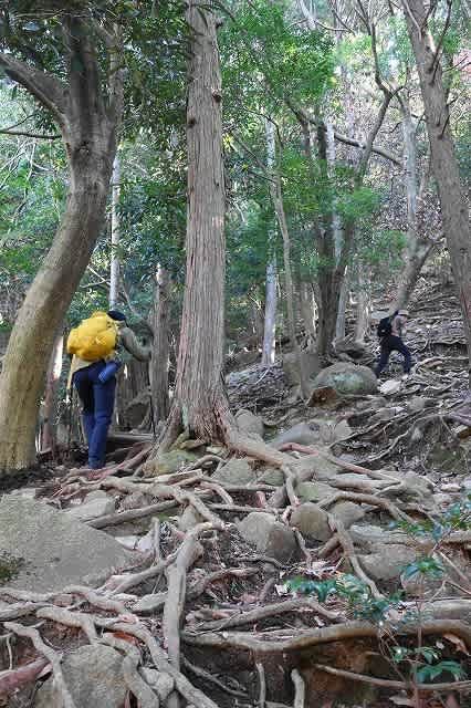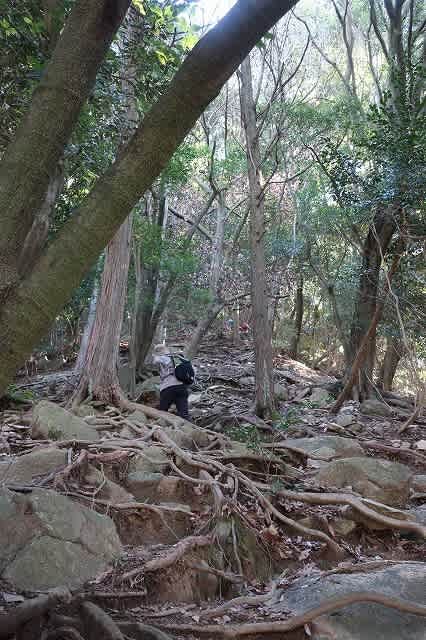 しかも直ぐに急登になった。地表を辺り一面に木の根が這って菊水山とは全く違った雰囲