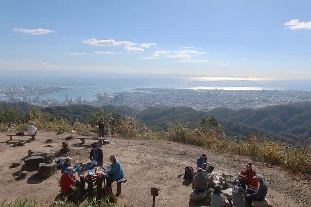 が到着。すぐにお弁当を広げてお昼にする。この山頂からの眺望も申し分ない。ポートア