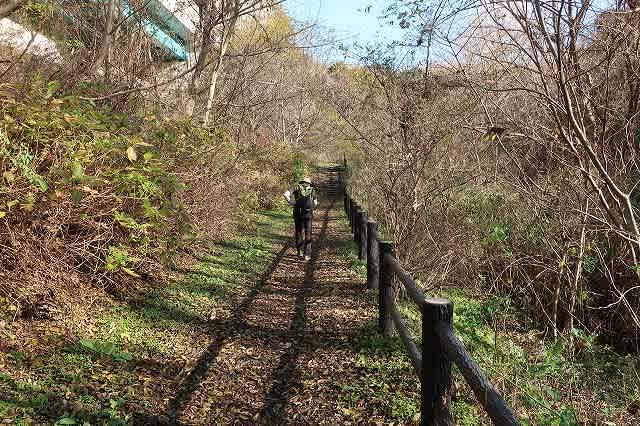 そこから左手に登って行くと今は廃駅となった菊水山駅が左上に見えた。周りに民家もなく