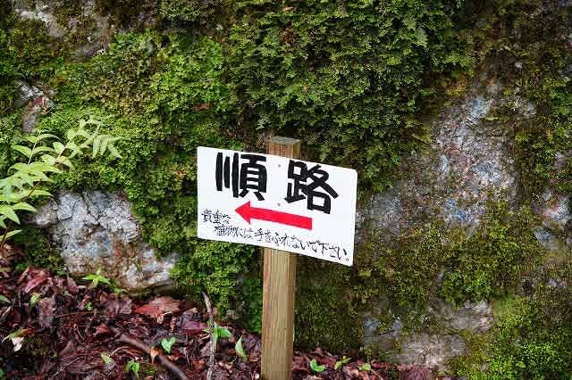 登山口を通り園内の順路と書かれた案内板とは逆行して通路へと入って行くと、さっそく