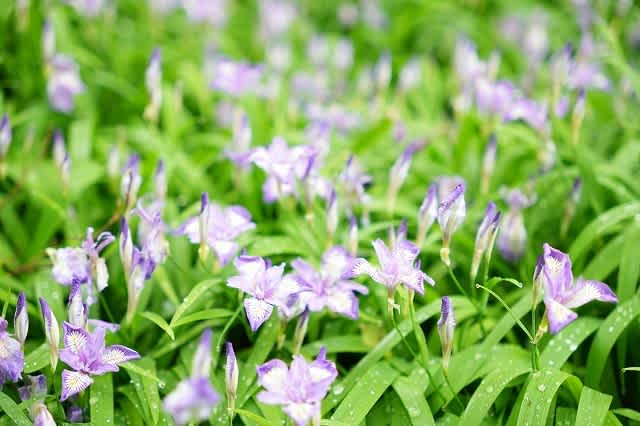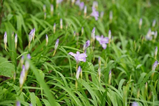 メのミニチュアの様なヒメシャガがびっしりと咲いている。