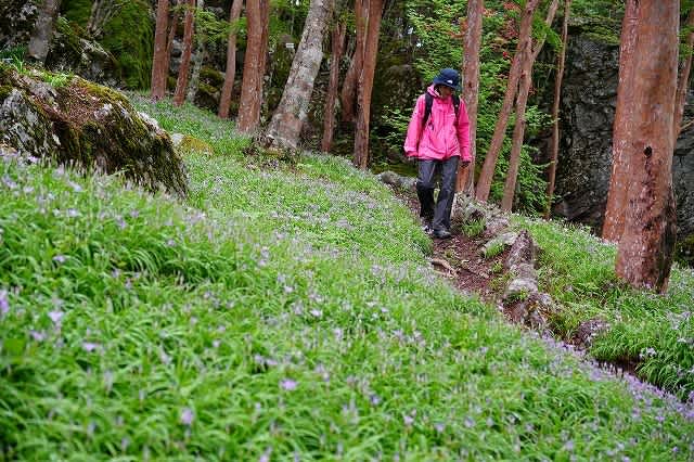 道の脇には目当てのヒメシャガの群生。シャガに似ていることからその名が付けられたよ