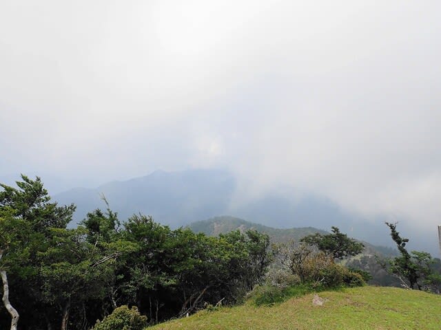 山頂からは相変わらず高城山の測候所は見えなかったか、南東の高丸山までの稜線は雲