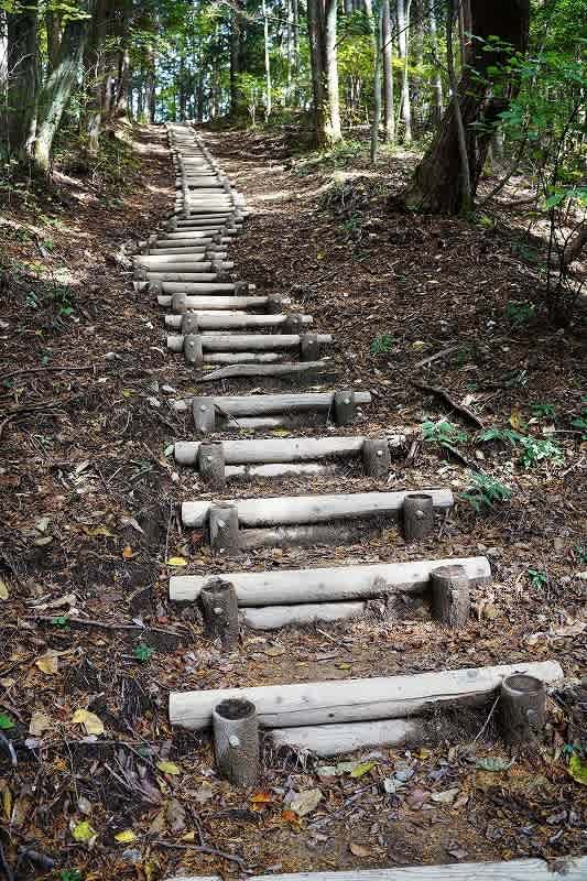 阿波竜王山までは丸太の階段が同じように登りでも続いていく。