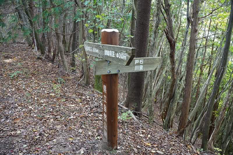 伐採地を過ぎ、珍しく四つに幹が分れた赤松を横目に見て、しばらく歩くと讃岐龍王山に着いた。