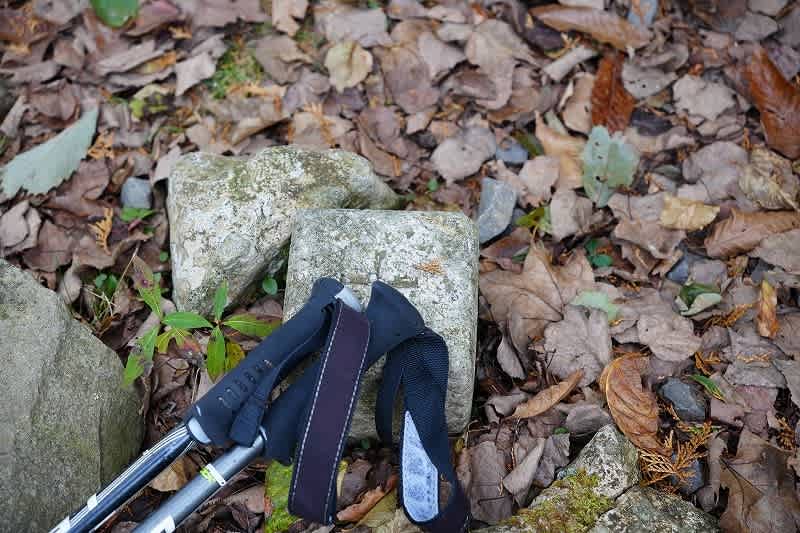 途中の笠形山への分岐は昔は峠だったのだろう、縦に割れてひびが入ったお地蔵さんがその面影を残していた。